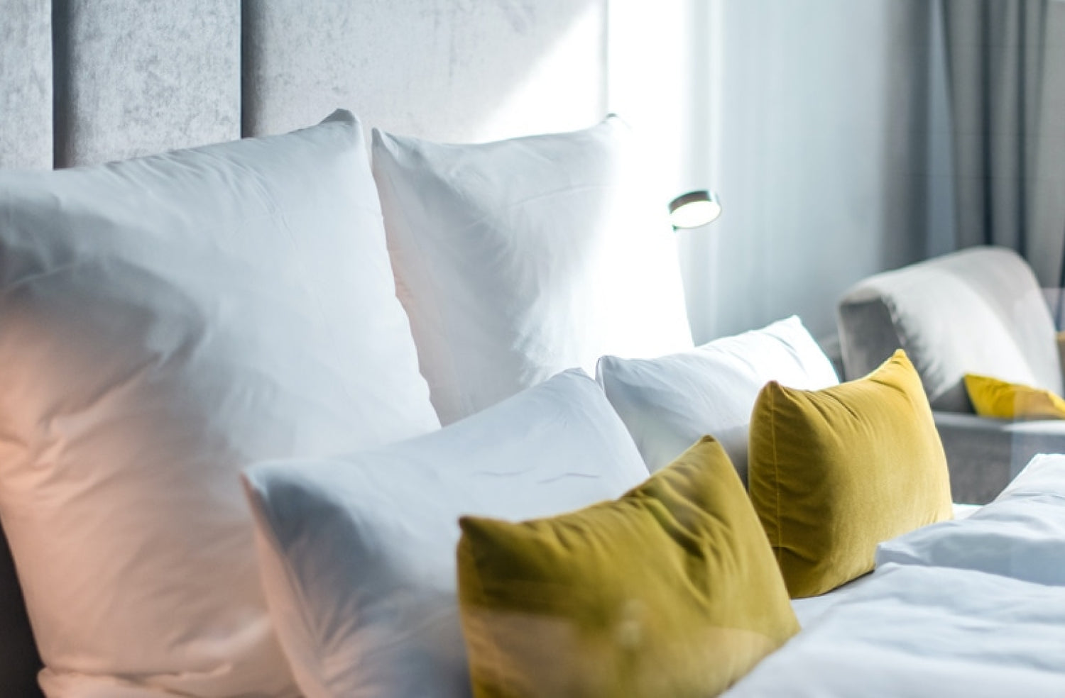 Schlafen wie auf Wolken — Unsere Premium-Kissen und Decken warten auf Dich.
